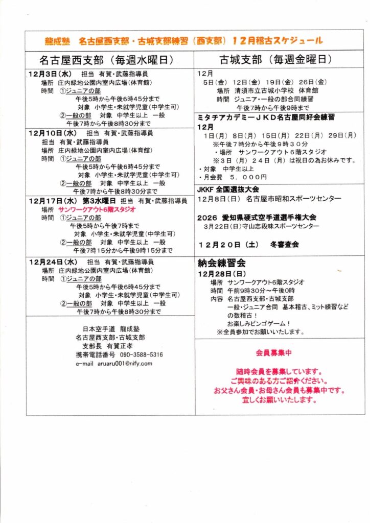 | 練習会場 | 春日井市立坂下小学校体育館 |